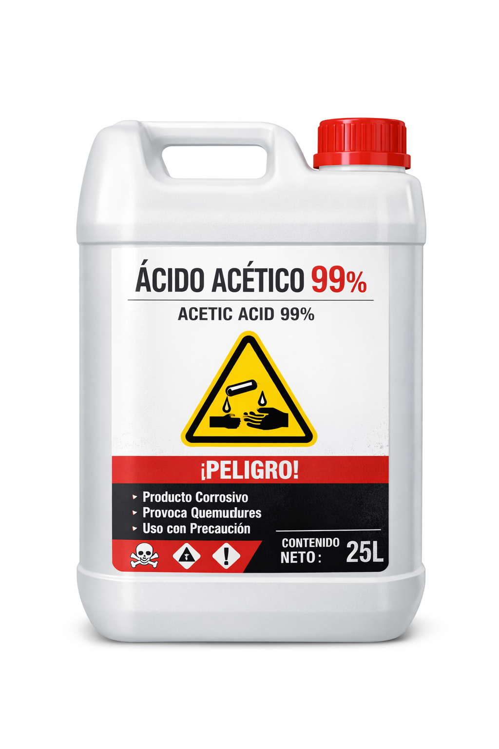 Consiste en ácido acético con una pureza mínima de 99.8% que contiene una porción muy baja de agua o de otras impurezas.