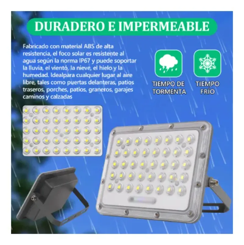 Este reflector solar LED de 1000W es perfecto para iluminar Bodegas, escuelas, jardines, pasajes y espacios abiertos , sin necesidad de cableado ni conexión a la red eléctrica. Gracias a su panel solar de alta eficiencia y batería integrada, funciona de forma totalmente autónoma .