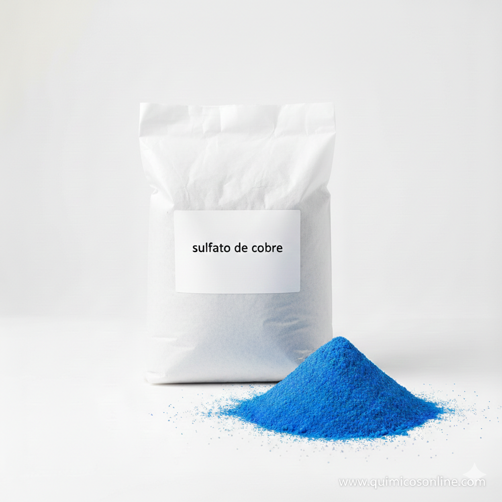El sulfato de cobre comercial suele tener un 98% de sulfato de cobre puro y puede contener trazas de agua.